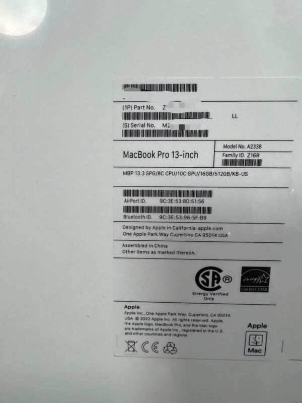 Full Specifications: 512GB SSD, 16GB RAM, 13 Inches, M2 Chip