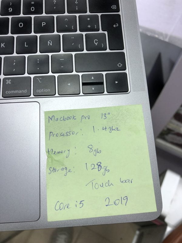 Full Specifications: Touch Bar, 8GB RAM, 128 GB SSD, Core i5, 1.4GHZ, 13 Inches.